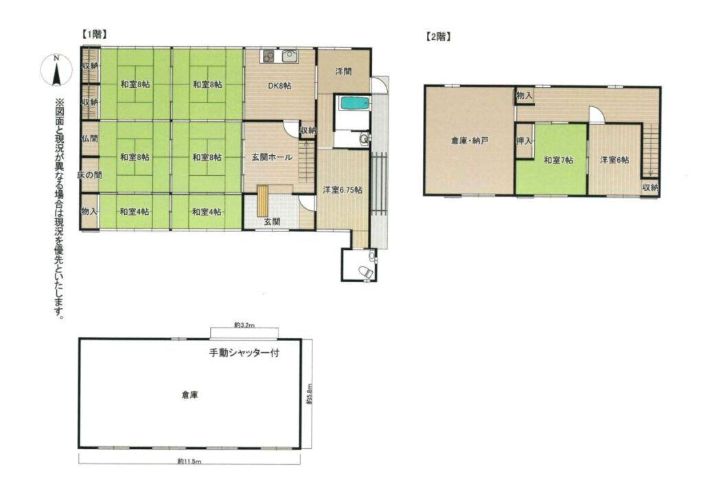 備考 | ※現況渡しです。 ※建物はすべて未登記です。(居宅:10DK+手動シャッター付倉庫) ※上水道の引込管は13mmです。 ※下水道は引込済みですが、接続はしていません。 (下水道受益者負担金は支払い済みです。) ※学校区:大藪小学校・輪之内中学校 |