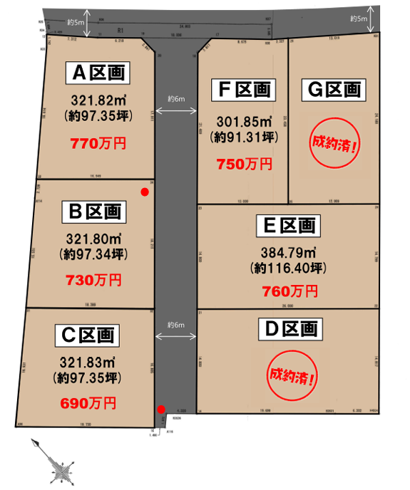 | 価格 | A 770万円 B 730万円 C 690万円 D 契約済 E 760万円 F 750万円 |
