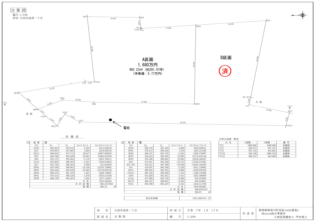 | 土地面積(公簿) | 土地面積(実測) | 962.23㎡(約291.07坪) | |